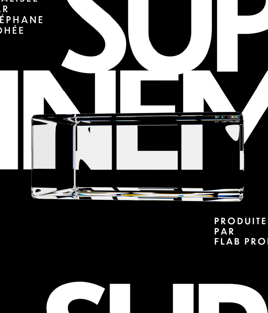 Les compositions utilisent le noir comme scène, le blanc comme lumière, et un prisme de verre comme élément signature : une forme transparente qui diffracte l’image, déforme le texte et introduit une dimension “optique” propre à l’univers du cinéma.
